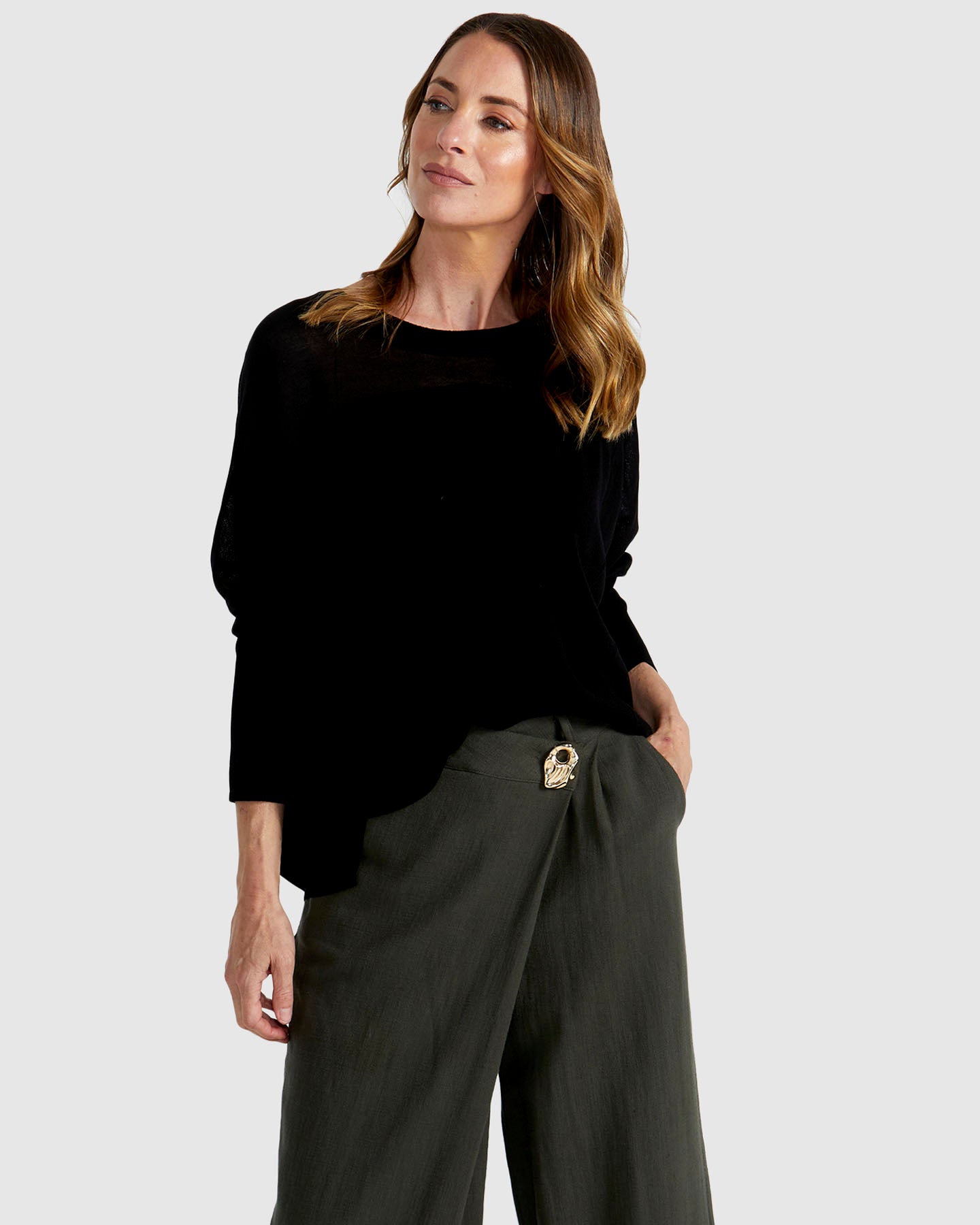 -Boat neckline-Hi low hem with side splits-Fine comfortable knit-Dropped shoulderFabric and Care89% Viscose 11% NylonCool gentle hand...