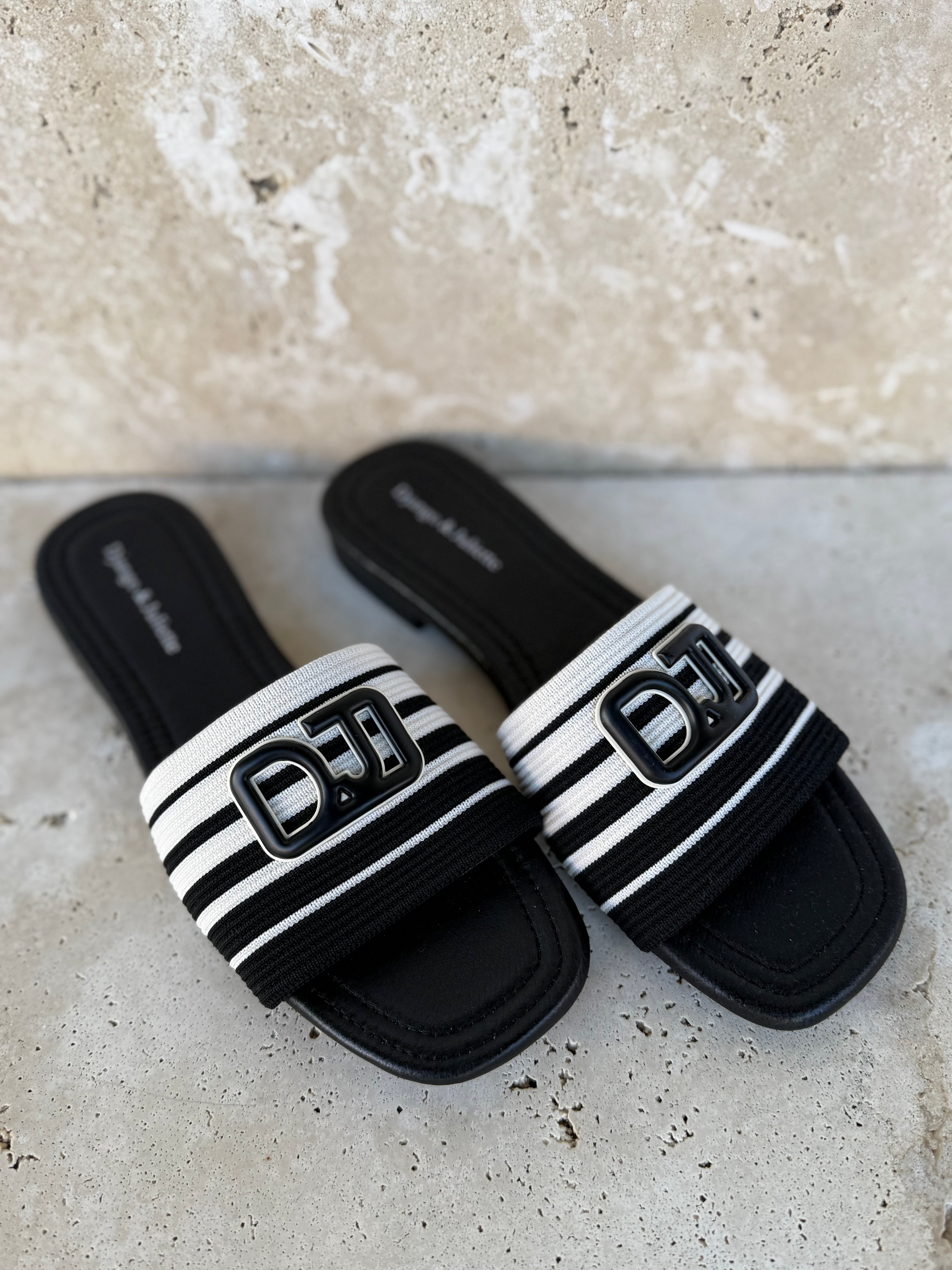Material: Fabric Heel Height(CM): 2.2 Women's flat slides Square toe Durable sole Flat block heel