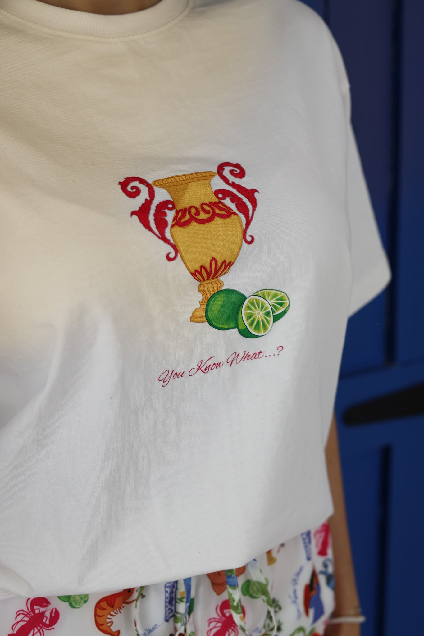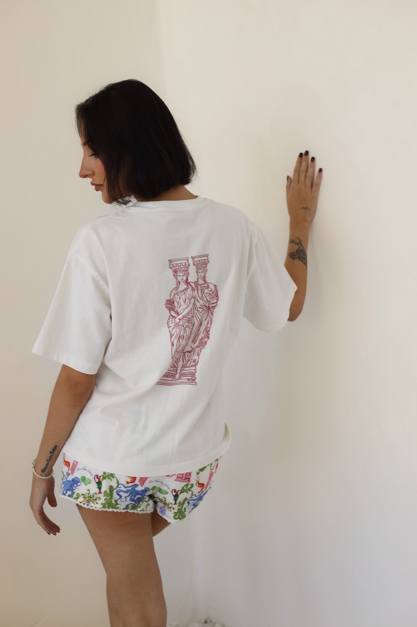The Helena Tee made from 100% premium cotton, this oversized essential is more than just a t-shirt. Featuring two exclusive custom prints a vibrant Greek-inspired vase with limes on the front and striking twin statues on the back it’s designed to turn heads from every angle. Effortlessly chic, unapologetically bold. This isn’t just a tee, it’s the statement piece your wardrobe is missing.
